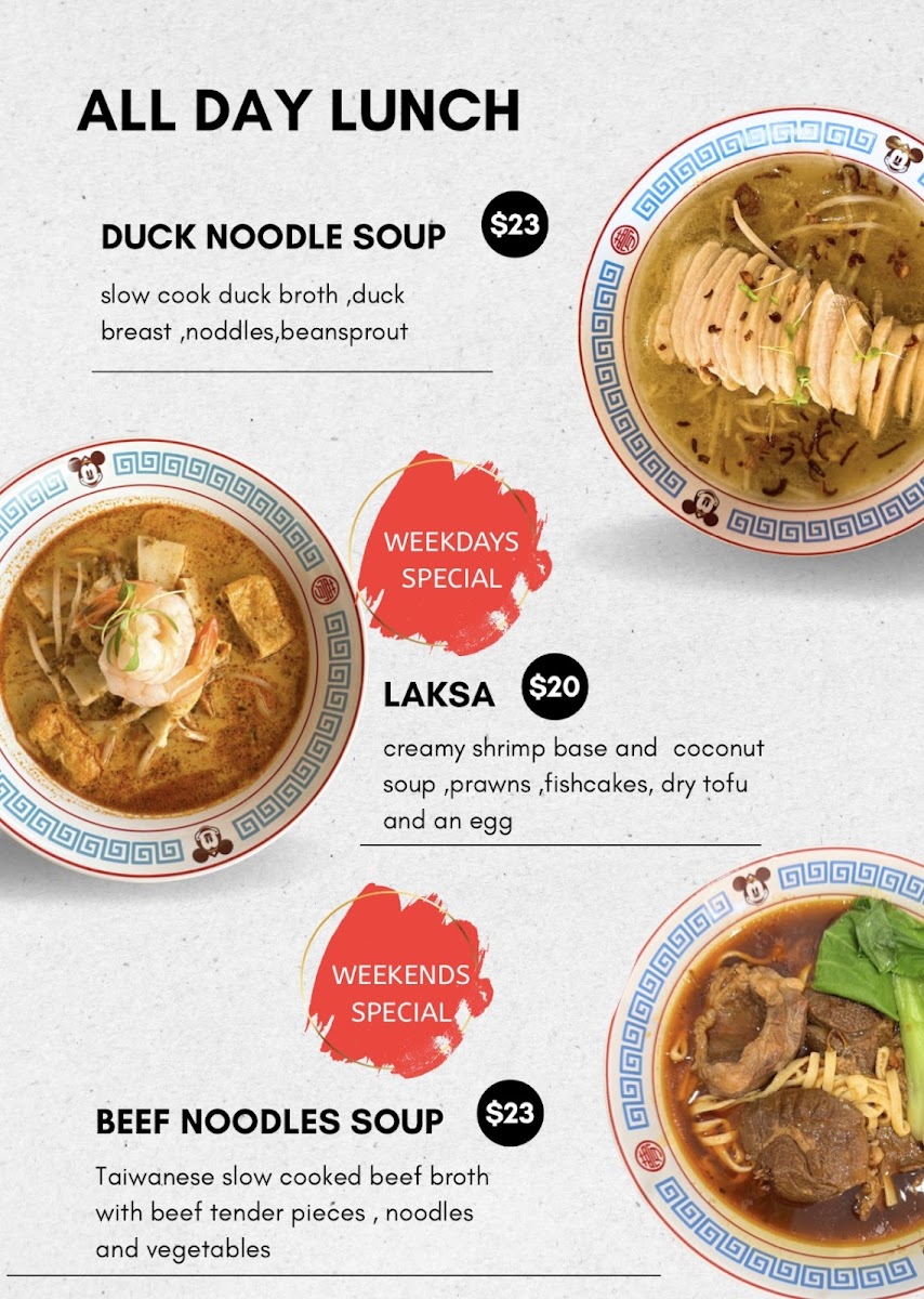 This menu is well-suited to visitors seeking quick orders or light meals, with options appropriate for coffee breaks and casual dining. It is structured to accommodate different preferences, from simple egg-based dishes to more substantial noodle and pasta meals during lunch or dinner hours.